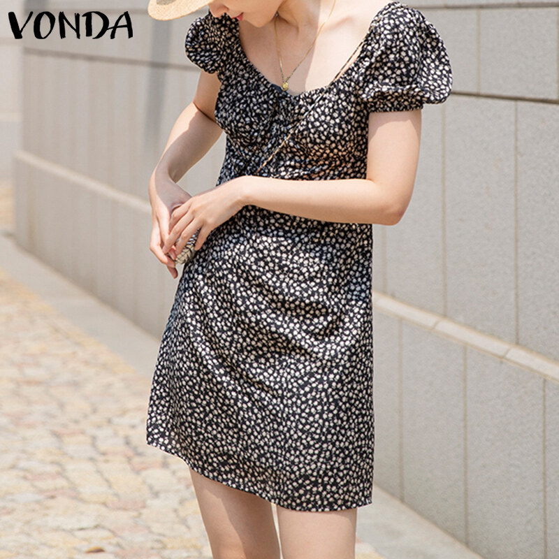 หากคุณกำลังมองหา (Korean Style) VONDA Womens Plus Size Short Sleeve Short Dress Printed